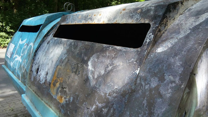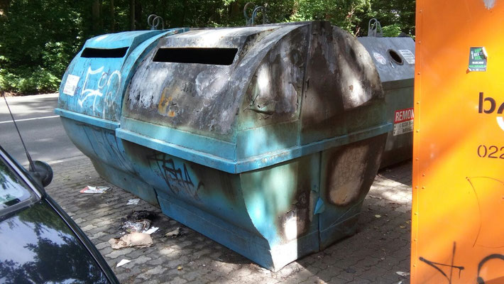 Gemeldet war ein Containerbrand. Damit ist üblicherweise ein metallener Sammelbehälter gemeint, dessen Inhalt – Altpapier oder Altkleider – brennt.